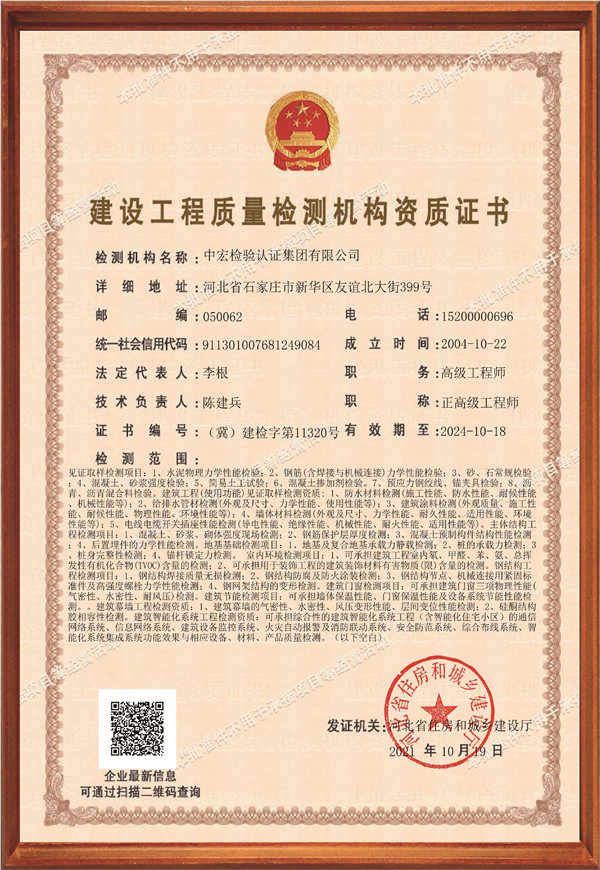 增項:建筑幕墻工程檢測資質:1.建筑幕墻的氣密性、氣密性、風壓變形性能、層間變位性能檢測;2.硅酮結構膠相容性檢測。