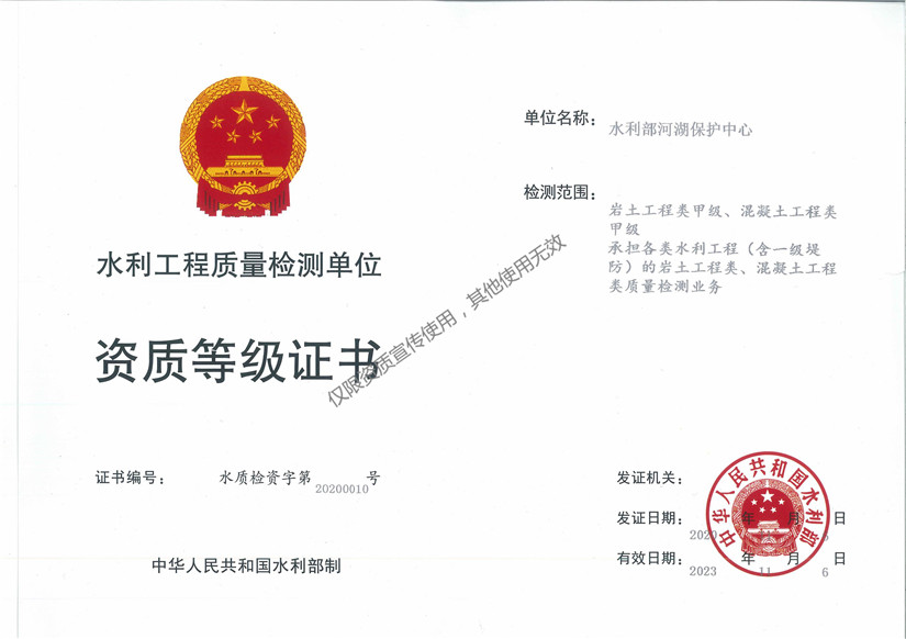 承擔各類水利工程(含一級堤防)的混凝土工程類、巖土工程類、量測類、金屬結構類、機械電氣類質量檢測業務水利工程(水利局主管)
