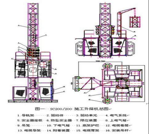 組成:施工升降機是由轎廂、驅動機構、標準節、附墻、底座、圍欄、電氣系統等幾部分組成。