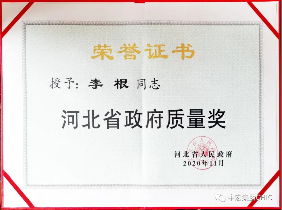 中宏集團(CHIC)董事長李根榮獲“河北省政府質量獎”