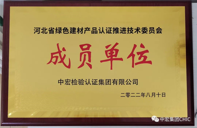 中宏集團(tuán)(CHIC)正式成為河北省綠色建材產(chǎn)品認(rèn)證推進(jìn)技術(shù)委員會成員單位