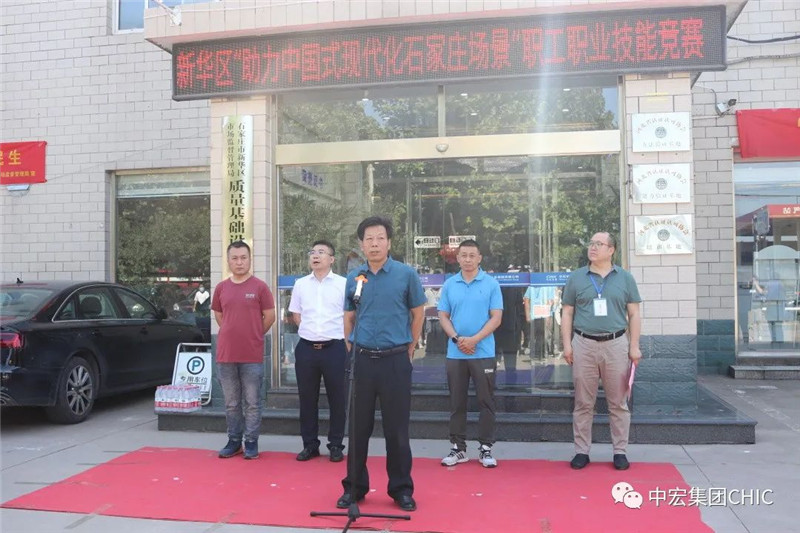 活動儀式上首先由中宏集團(CHIC)董事長/黨支部書記李根致歡迎辭,對各位領導和參賽選手的到來表示熱烈的歡迎,他在致辭中說到,職業技能競賽是一個非常重要的活動,它旨在培養我們學習新知識、鉆研新技能、掌握新本領、崗位創一流的進取精神,不斷提高職工的技能水平,促進企業的發展,推動石家莊市的現代化建設。他希望這次比賽能夠激發每個人的潛力,讓大家不斷進步,為建設質量強國、美麗河北做出我們應有的貢獻!