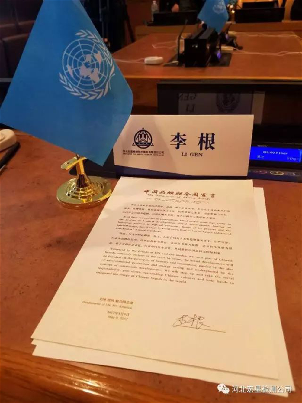 在中國品牌日之時,宏星檢驗檢測集團作為中國檢測行業的典范,代表中國檢測品牌在聯合國及中外媒體的見證下,莊嚴宣誓:在未來品牌經營中,以誠信創新為基石,以環保節能為原則,以可持續發展為理念,勇于承擔社會責任,傳承中國優秀文化,共同維護中國品牌之國際形象!